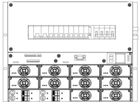 TEP400H1/48 is a DC distribution unit which be used for solar/diesel/grid hybrid scenarios. It contains up to 8 pieces of HFSM modules, 4 pieces of solar modules, DC power distribution board controller SC501 etc. The function is collecting multiple power input from solar, diesel, and grid, and converts it is DC output for loads.
